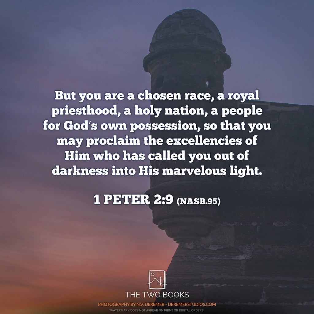 “But you are a chosen race, a royal priesthood, a holy nation, a people for God’s own possession, so that you may proclaim the excellencies of Him who has called you out of darkness into His marvelous light”
