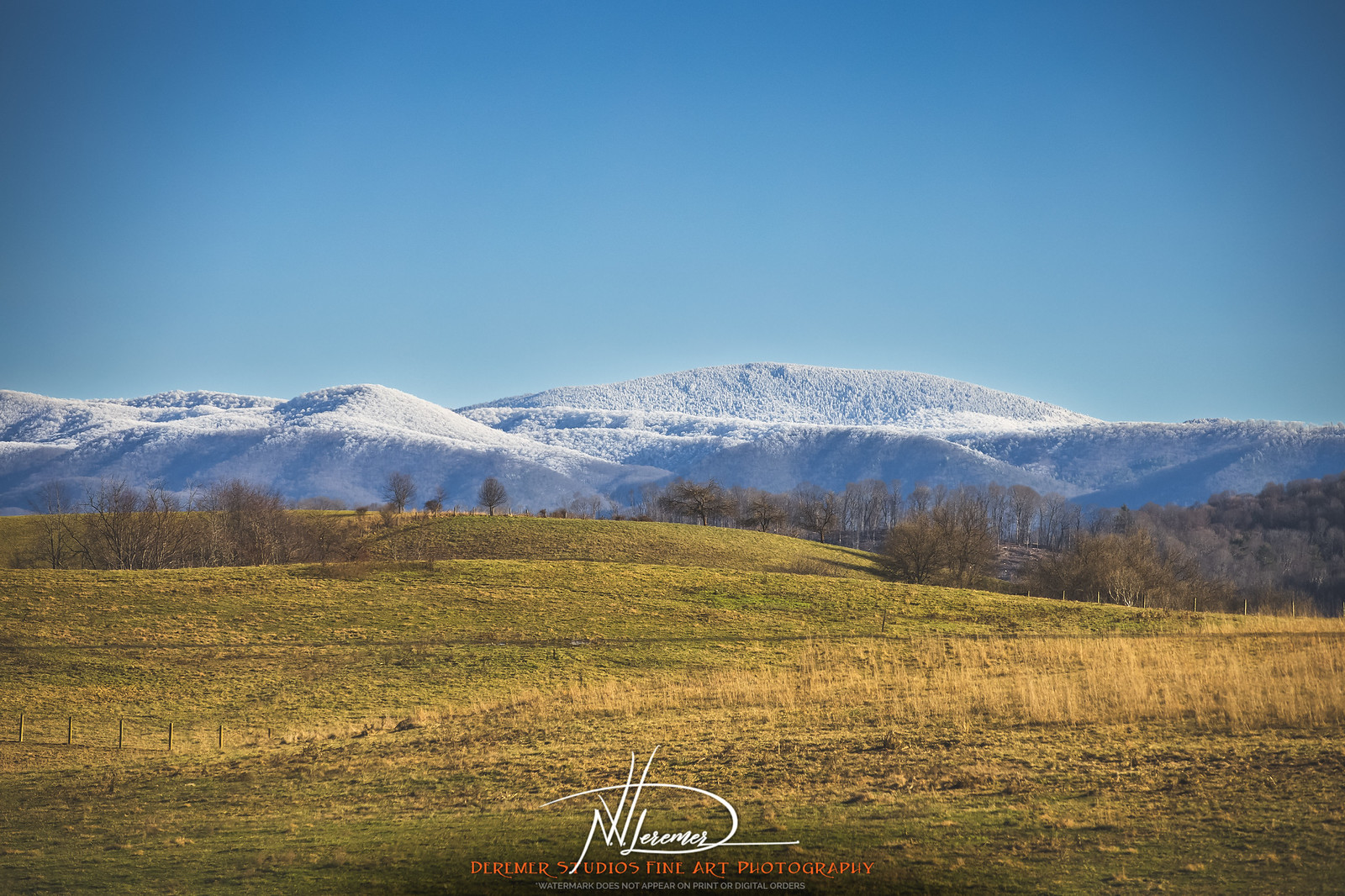 Though I’ve been unable to find out exactly how White Top first got its name, looking out toward the summit from the valleys near Glade Springs on days such as the one above (taken two days after the storm, when the snow in the lower elevations had already melted), seems to hint at an answer. Not only do the whitewashed trees along the mountain’s upper elevations shine white against the greens and browns of the hills and dales below, but the highland meadow, with it’s snow-encrusted low grasses and alpine shrubs, shimmers doubly bright in the afternoon sun.